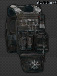 A specialized body armor developed for the FSB’s Special Purpose Center, featuring high functionality and modularity. The lightweight version is designed to provide maximum mobility while protecting vital organs. This black version has been customized by one of the Arena fighters.